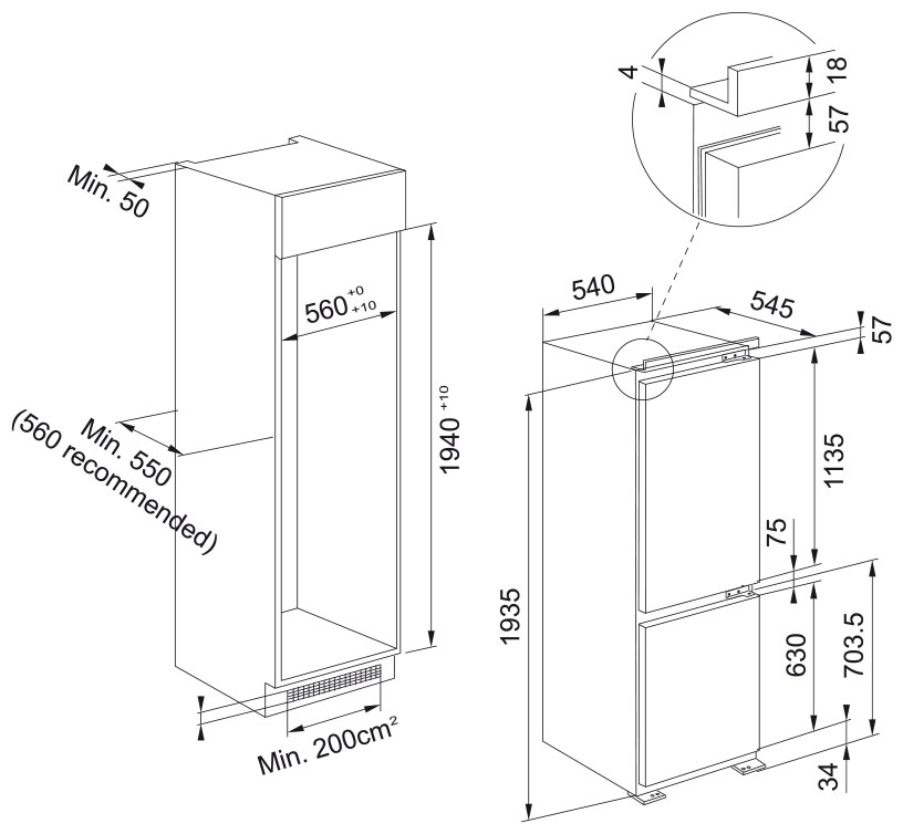 Franke FCB 360 V NE D - схема встраивания к холодильнику на разных языках на Hausdorf