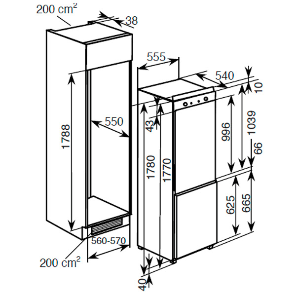 Haier BCFE625AWRU - схема встраивания с размерами к холодильнику на разных языках на Hausdorf