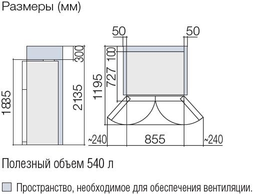 Hitachi R-W 660 PUC7 GGR - схема с размерами к холодильнику на разных языках на Hausdorf