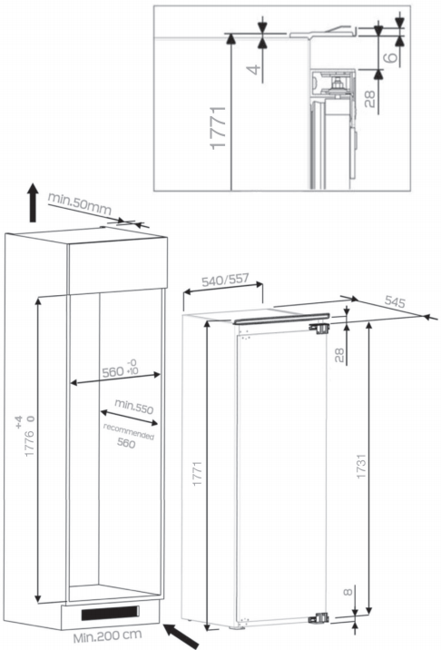 KitchenAid KCBNS 18602 - схема встраивания с размерами к холодильнику на разных языках на Hausdorf