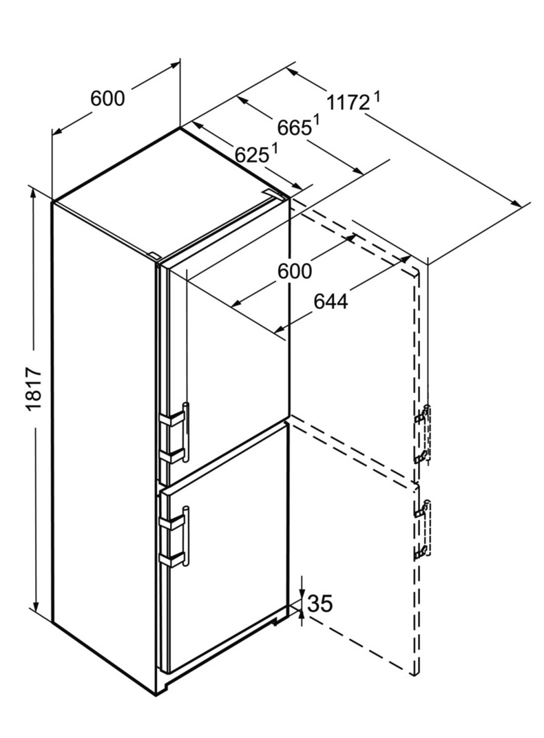 Liebherr CN 3515 - схема с размерами к холодильнику на разных языках на Hausdorf