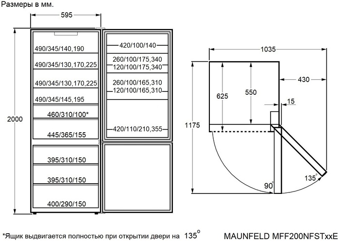 Maunfeld MFF200NFSTSE - схема с размерами версия 2 к холодильнику на разных языках на Hausdorf