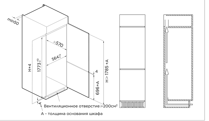 Midea MDRE371FGE01M - схема встраивания к холодильнику на разных языках на Hausdorf