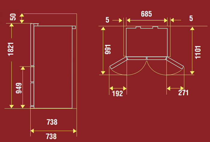 Mitsubishi Electric MR-WXR627Z-W-R - схема с размерами к холодильнику на разных языках на Hausdorf