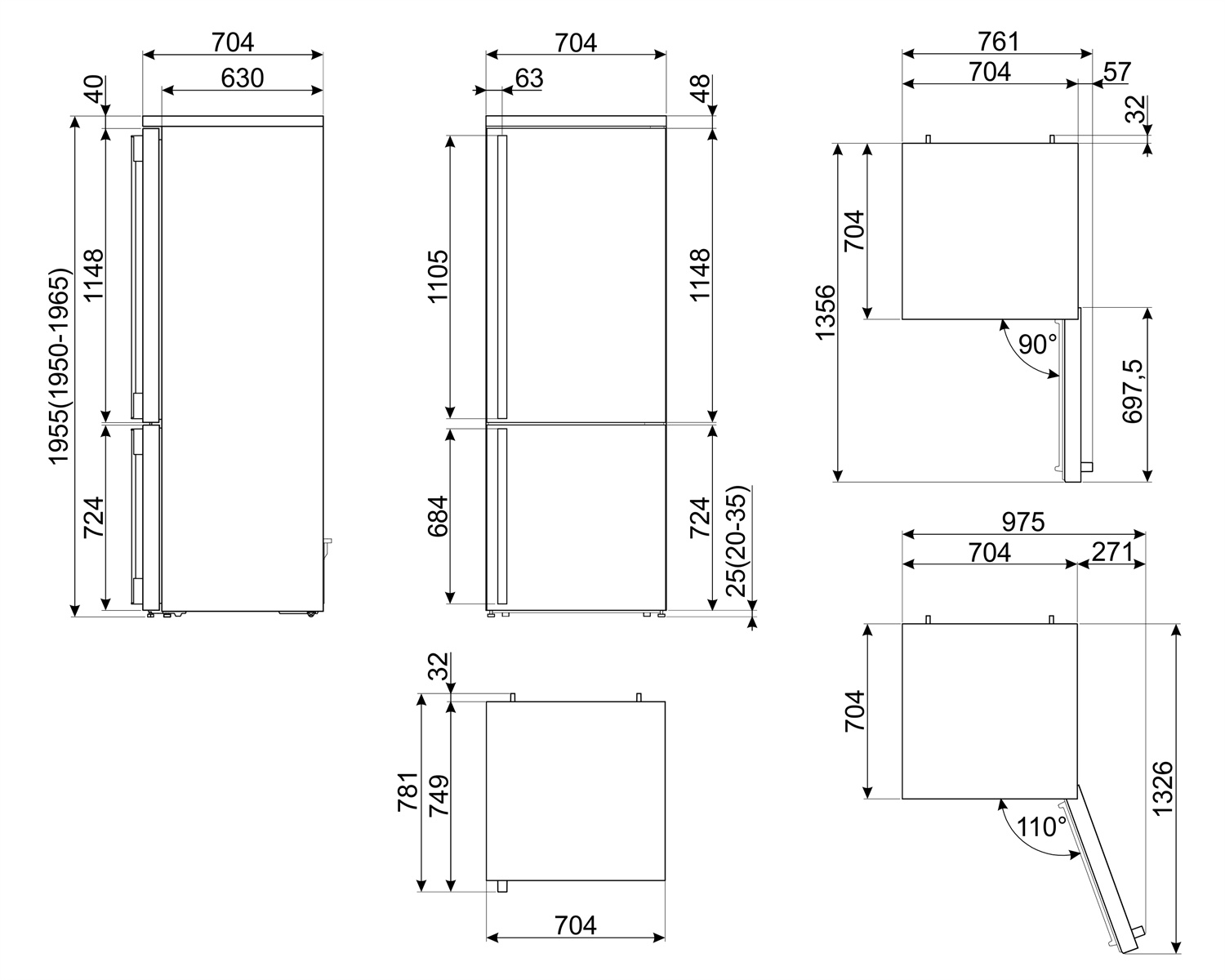 Smeg FA490RX - схема с размерами к холодильнику на разных языках на Hausdorf