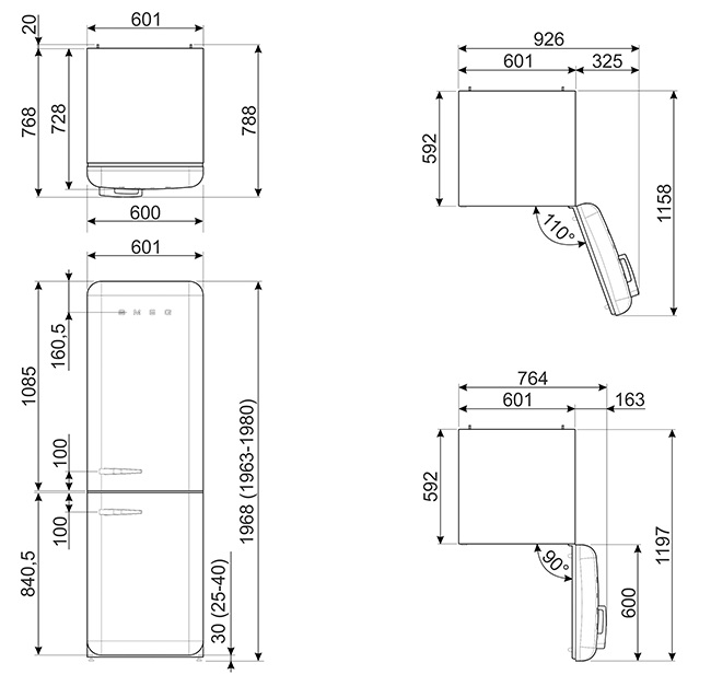 Smeg FAB32LPK3 - схема с размерами к холодильнику на разных языках на Hausdorf