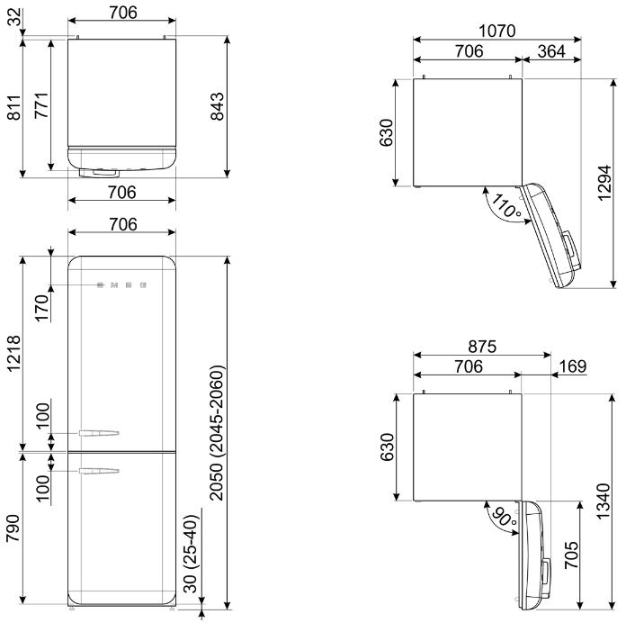 Smeg FAB38RRD - схема с размерами к холодильнику на разных языках на Hausdorf