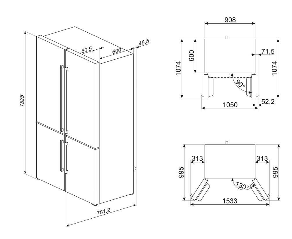 Smeg FQ60BDE - схема с размерами к холодильнику на разных языках на Hausdorf