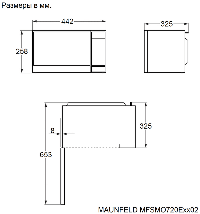 Maunfeld MFSMO720EB02 - схема с размерами версия 2 к микроволновой печи на разных языках на Hausdorf