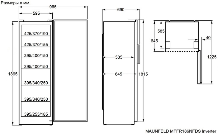 Maunfeld MFFR186NFDS Inverter - схема с размерами версия 2 к холодильнику на разных языках на Hausdorf