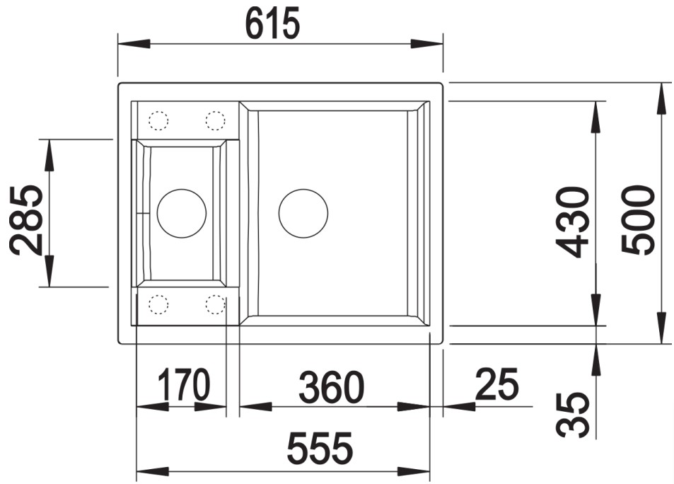 Blanco METRA 6 525922 - схема встраивания с размерами (1) к мойке на разных языках на Hausdorf