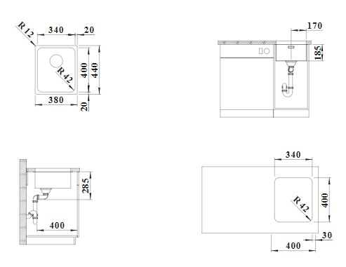 Сохранить файл: Схема с размерами к Blanco SOLIS 340-U 526115.JPG, 19.6 Кб