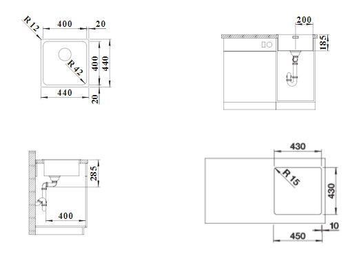 Blanco SOLIS 400-IF 526118 - схема с размерами к мойке на разных языках на Hausdorf