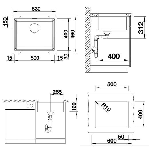 Сохранить файл: Схема с размерами к Blanco SUBLINE 500-U 527353.JPG, 93.18 Кб