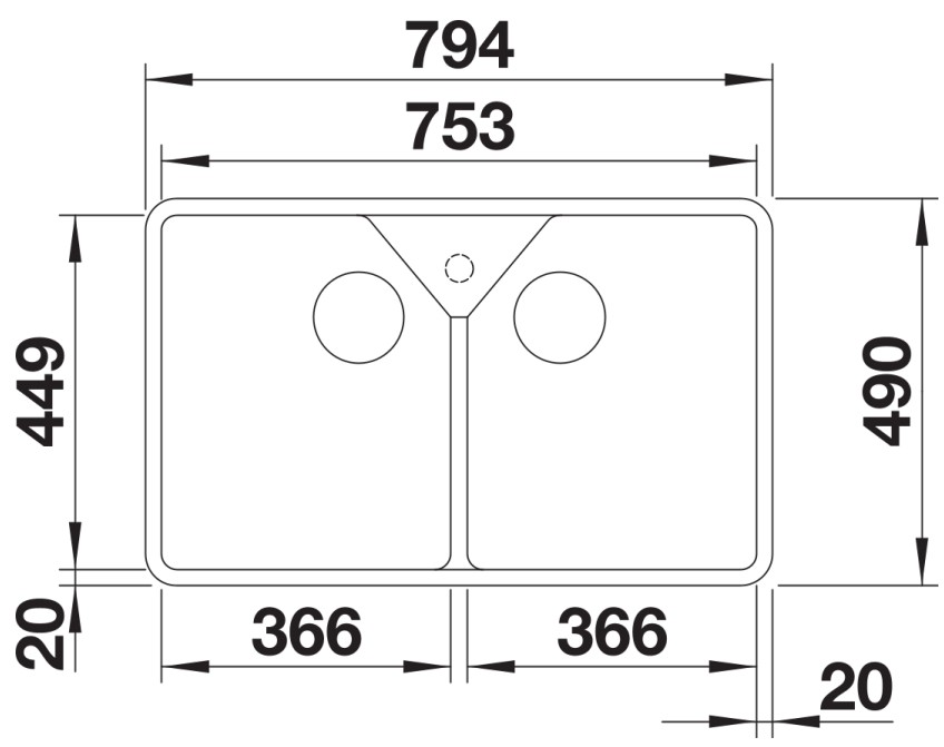 Blanco VILLAE Double 525164 - схема встраивания с размерами к мойке на разных языках на Hausdorf