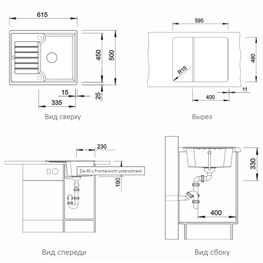 Blanco ZIA 40 S 526006 - схема с размерами к мойке на разных языках на Hausdorf