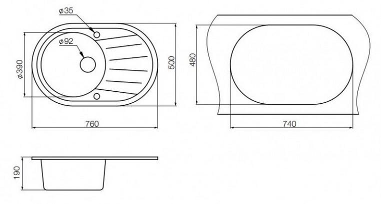 Graude QS 45.0 черный - схема встраивания с размерами к мойке на разных языках на Hausdorf