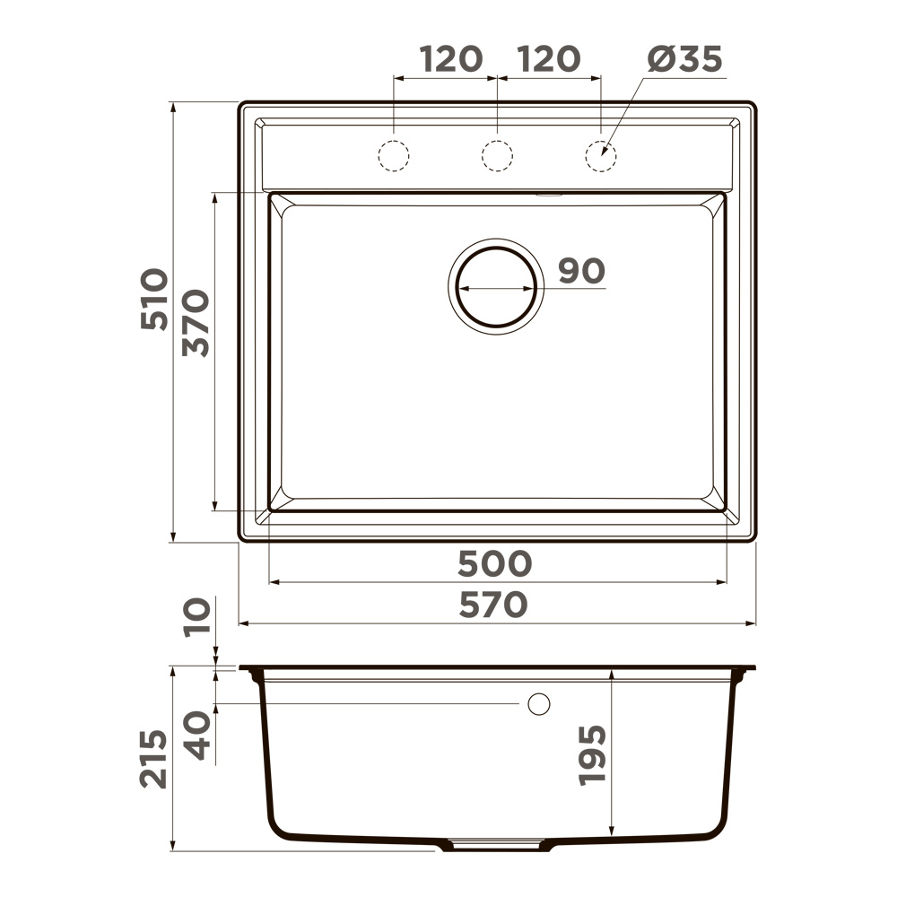Omoikiri DAISEN 57-ES - схема с размерами версия 2 к мойке на разных языках на Hausdorf