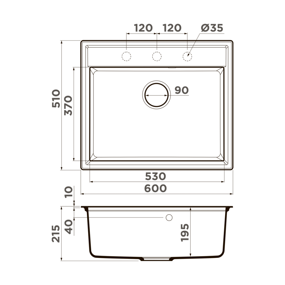 Omoikiri Daisen 60-ES - схема с размерами версия 2 к мойке на разных языках на Hausdorf