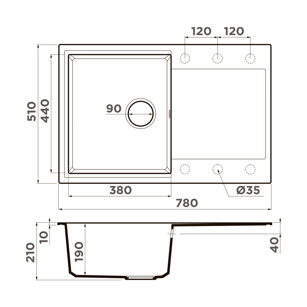 Сохранить файл: Схема с размерами к Omoikiri Daisen-78-GR.PNG, 121.2 Кб