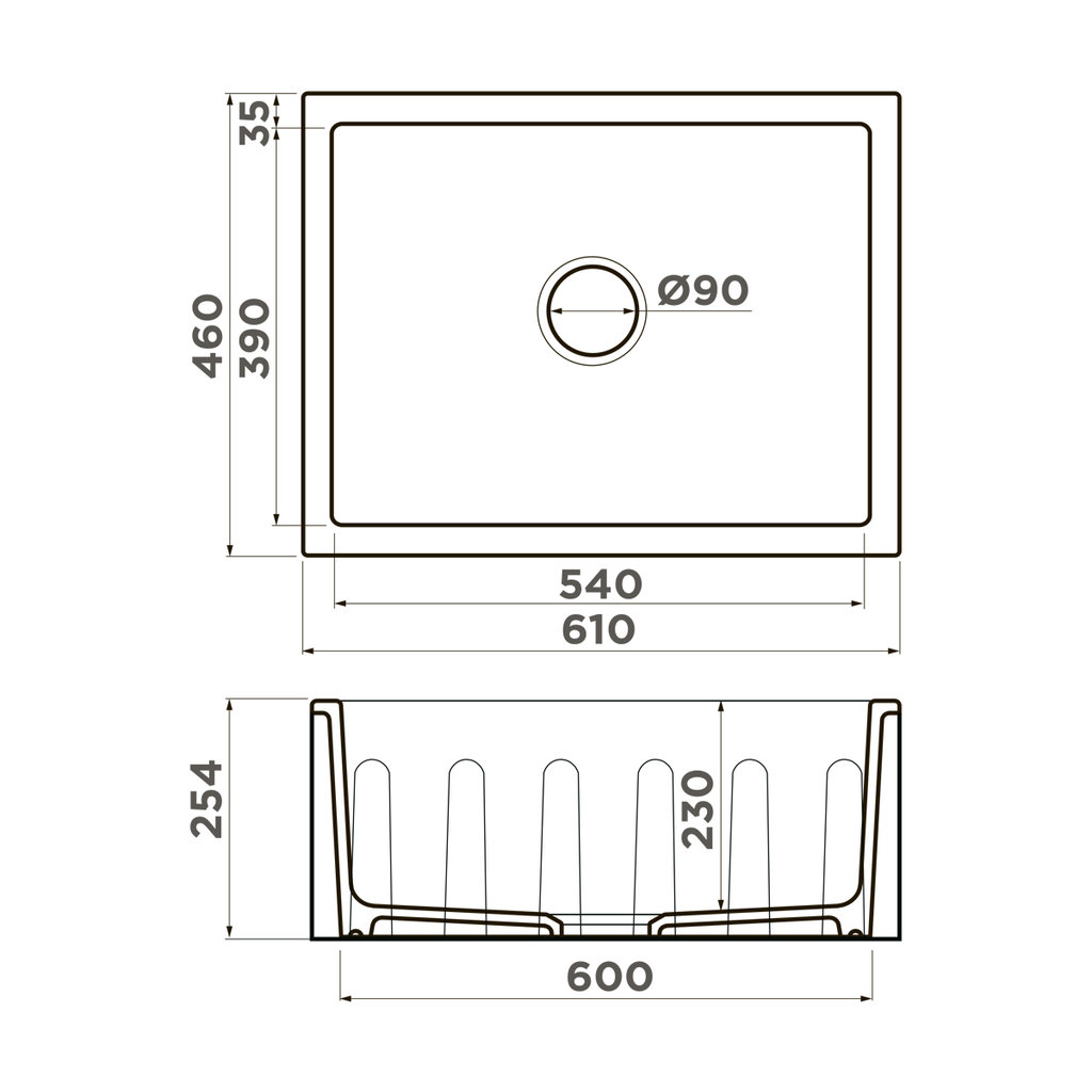 Сохранить файл: Схема с размерами к Omoikiri Mikura 61 WH.JPG, 85.85 Кб
