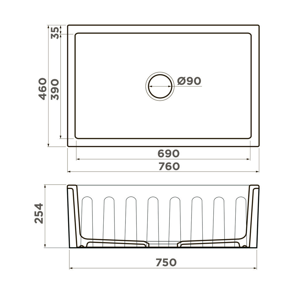 Сохранить файл: Схема с размерами к Omoikiri Mikura 76 PE.JPG, 87.97 Кб