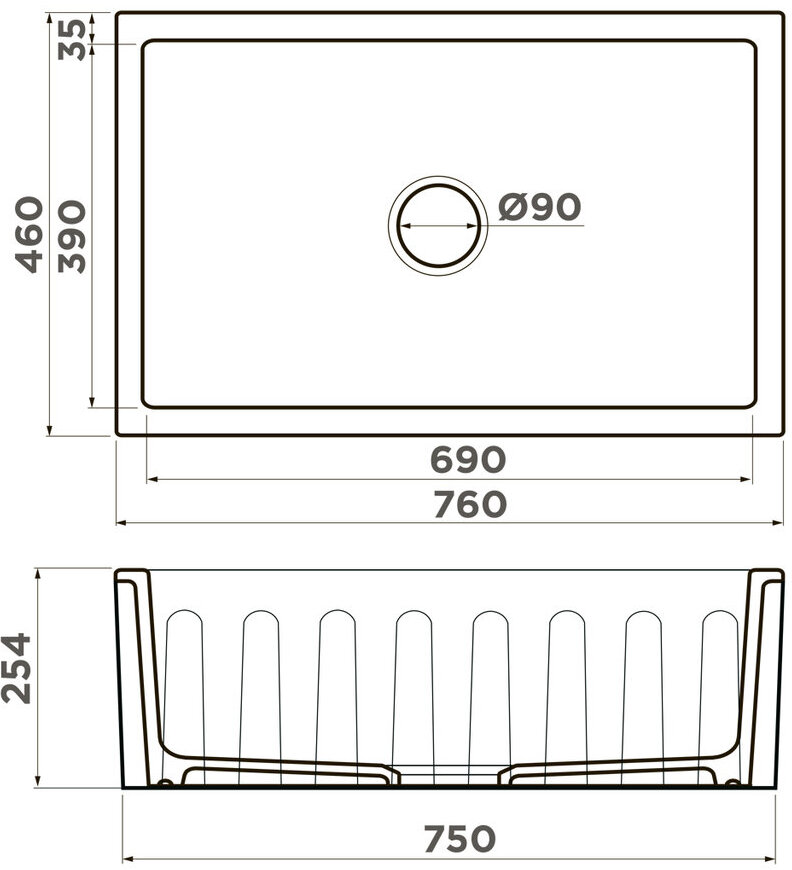 Сохранить файл: Схема с размерами к Omoikiri Mikura 76 WH.JPG, 84 Кб