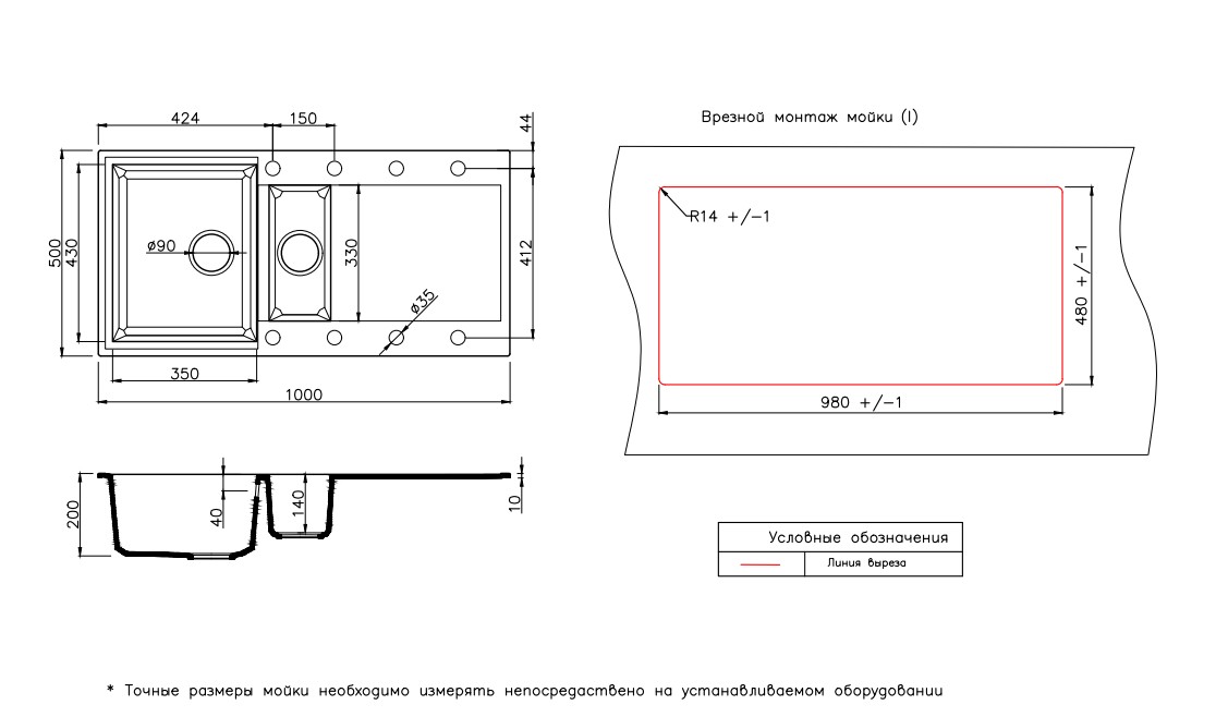 Omoikiri SAKAIME 100-2-ES - схема с размерами версия 3 к мойке на разных языках на Hausdorf