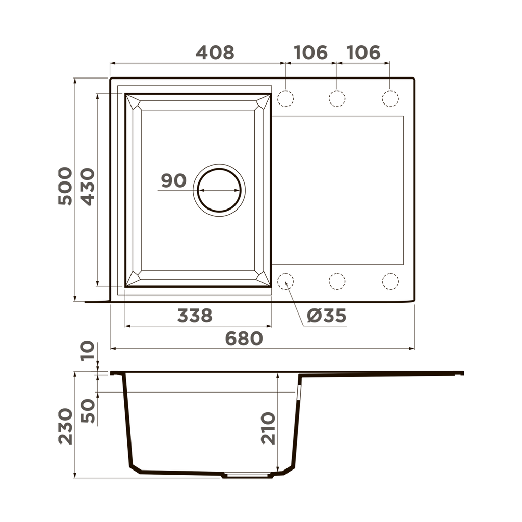 Сохранить файл: Схема с размерами к Omoikiri SAKAIME 68 BE.PNG, 129.18 Кб