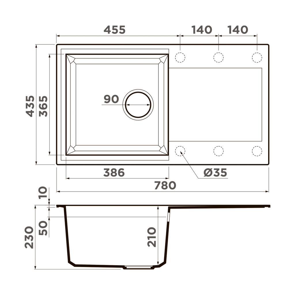 Сохранить файл: Схема с размерами к Omoikiri SAKAIME 78 BL.PNG, 134.84 Кб