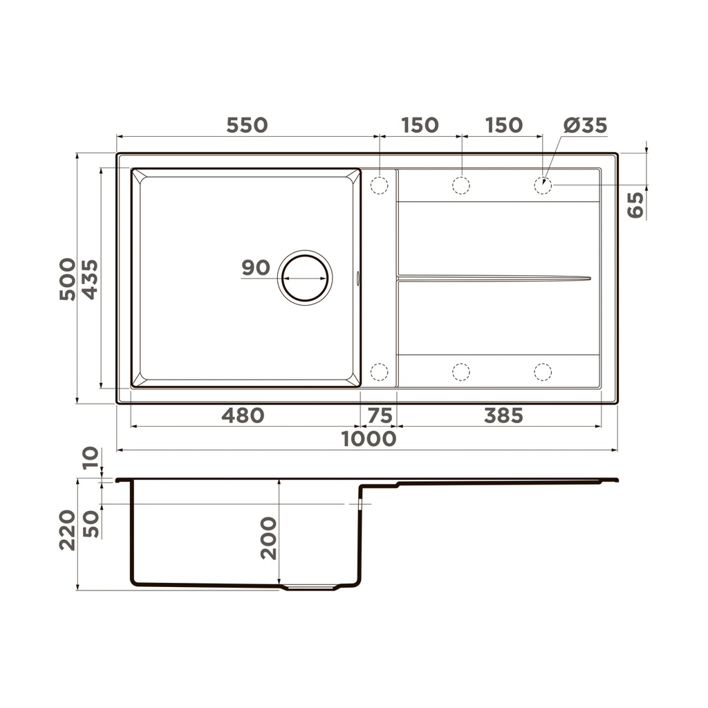 Сохранить файл: Схема с размерами к Omoikiri SUMI 100A WH.PNG, 114.68 Кб