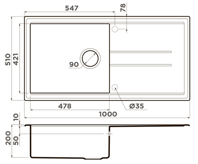 Сохранить файл: Схема с размерами к Omoikiri TEDORI 100 PL.JPG, 81.92 Кб