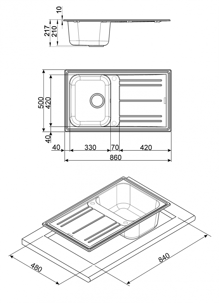 Smeg LZ861B - схема встраивания с размерами к мойке на разных языках на Hausdorf
