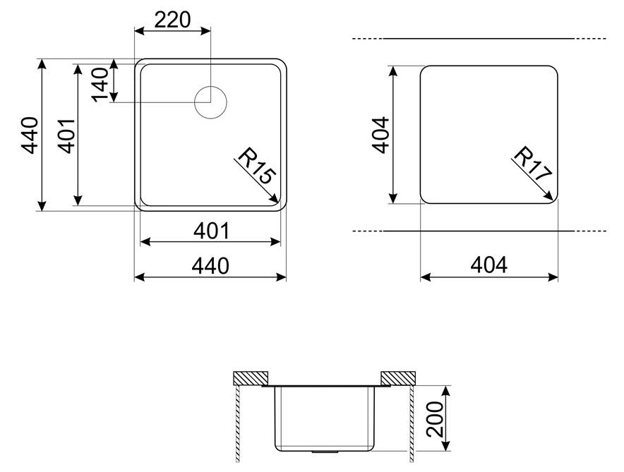 Smeg VSTR40BRX - схема встраивания с размерами к мойке на разных языках на Hausdorf