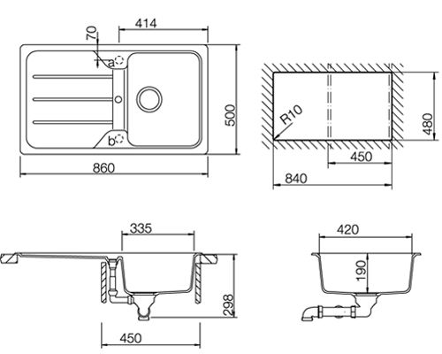 Teka Simpla 45 TG 40144500 - схема с размерами версия 2 к мойке на разных языках на Hausdorf