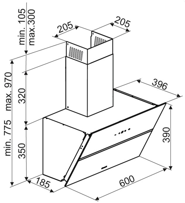 Brandt BHV2673XB - схема с размерами к вытяжке на разных языках на Hausdorf