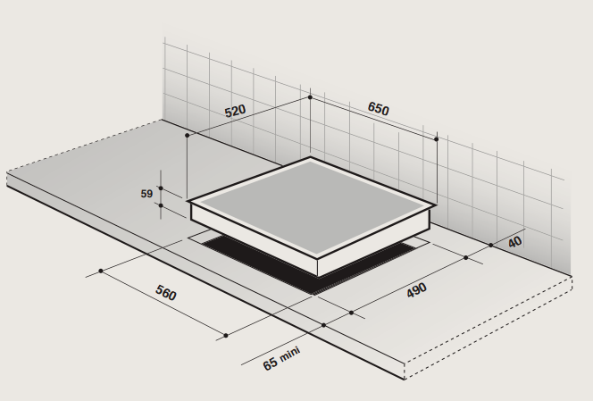 De Dietrich DTI 1358 DG - схема встраивания к варочной панели на разных языках на Hausdorf