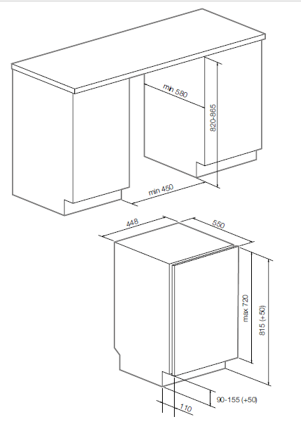 Graude VG 45.0 - схема встраивания с размерами к посудомоечной машине на разных языках на Hausdorf