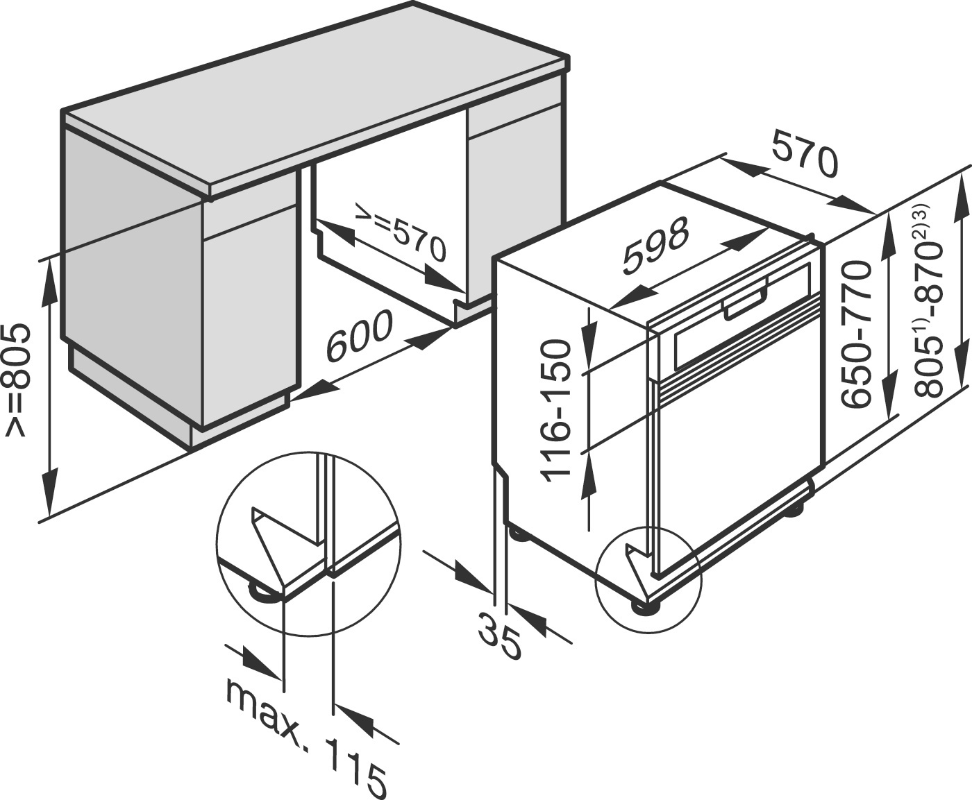 Miele G6620 SCi - схема встраивания к посудомоечной машине на разных языках на Hausdorf