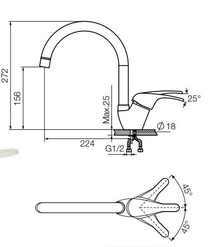 Graude AD 20.0 шампань - схема с размерами к смесителю на разных языках на Hausdorf