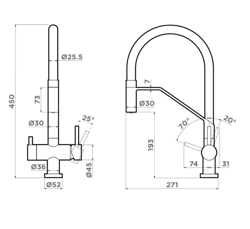 Omoikiri Akeno bn - схема с размерами к смесителю на разных языках на Hausdorf