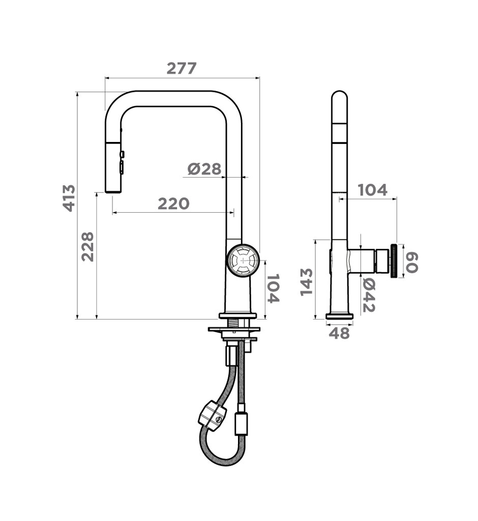 Omoikiri Arita-SB GB - схема с размерами к смесителю на разных языках на Hausdorf