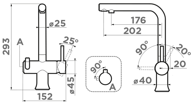 Omoikiri HOTARU GB-IB графит - схема с размерами версия 2 к смесителю на разных языках на Hausdorf