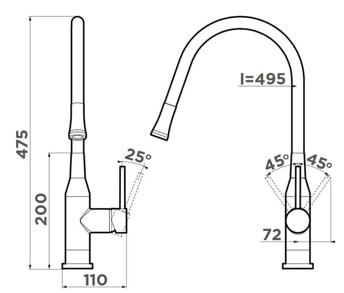 Omoikiri YATOMI черный/нержавеющая сталь - схема с размерами версия 2 к смесителю на разных языках на Hausdorf