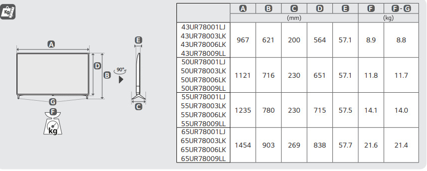 LG 75UR78009LL - схема с размерами к телевизору на разных языках на Hausdorf