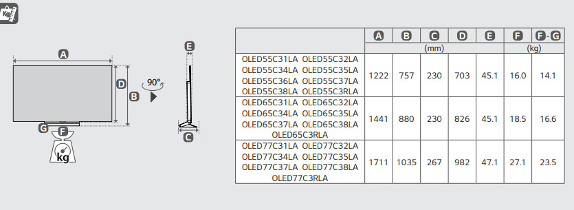 LG OLED77C3 - схема с размерами версия 2 к телевизору на разных языках на Hausdorf