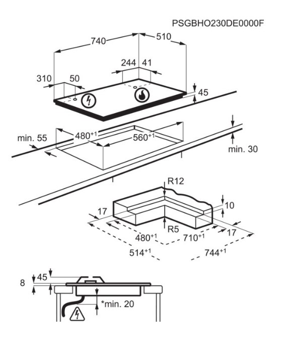 AEG HKB75453NB - схема с размерами версия 2 к варочной панели на разных языках на Hausdorf