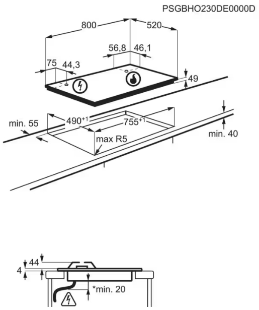 AEG HVB8453IB - схема с размерами версия 2 к варочной панели на разных языках на Hausdorf