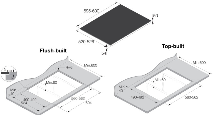 Asko HI2642FMG1 - схема встраивания с размерами к варочной панели на разных языках на Hausdorf