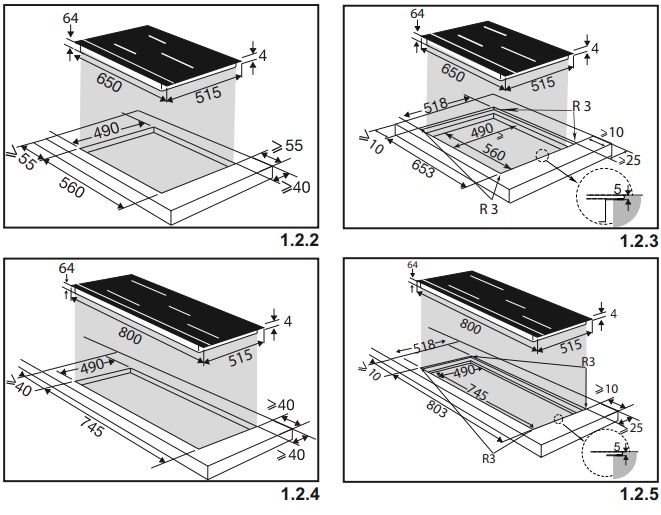 De Dietrich DPI7688XT - схема встраивания с размерами к варочной панели на разных языках на Hausdorf